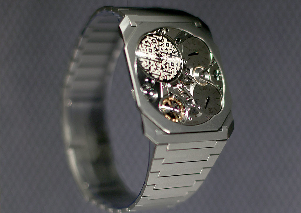 Thanks to a QR code engraved on the ratchet wheel of the watch, the first 10 owners of the Octo Finissimo Ultra will receive an exclusive NFT artwork that guarantees the authenticity and uniqueness of the watch by means of blockchain technology.