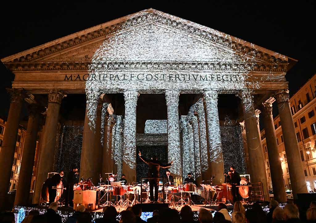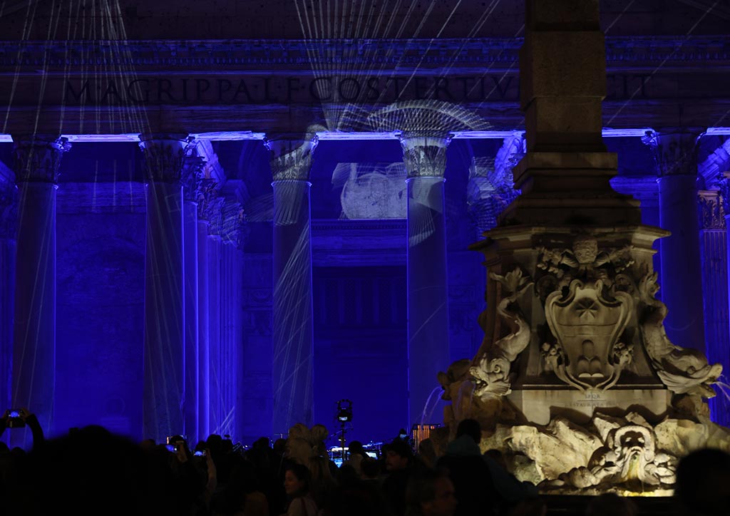 The beginning and the end of the show saw thousands of data from the history of Italian architecture and art that, through artificial intelligence algorithms, have been reworked and projected on the pronaos of the Pantheon.