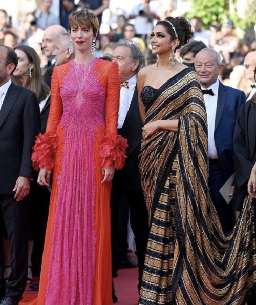 Deepika Padukone, one of the highest-paid actresses in India and a Cannes 2022 official jury member, wore a one-shoulder sari by Sabyasachi to honor her heritage. Meanwhile, another jury member, English actress and film director Rebecca Hall stunned in a custom Gucci number embellished with crystals.