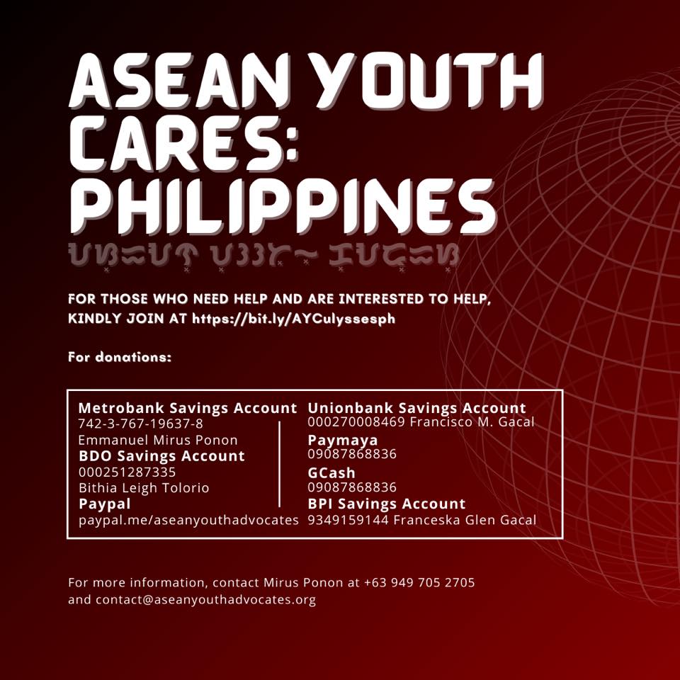 The youth arm of the Association of the Southeast Asian Nation seeks donations for victims of the recent typhoon. As of writing, they had successful relief operations in Marikina City and. The team is now moving to Rizal to distribute essentials.