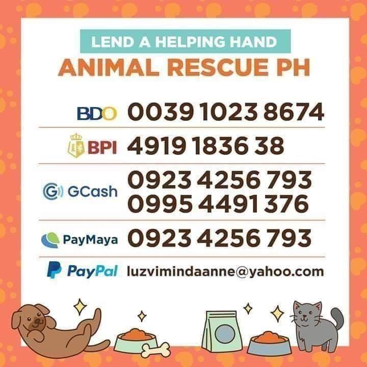 The independent volunteer indigent rescues and shelters different animals, mostly rescue dogs and cats. Apart from food, they give the animals their much-needed medications and supplies to treat their wounds and other sicknesses. The animal rescuer accepts donations through GCash and other online banking services. You may donate through these numbers: 09954491376, 09234256793, 09213179921. For more information, visit their Facebook page.