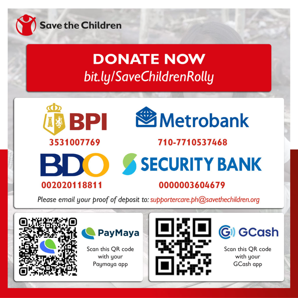As the name of the organization suggests, they aid in securing the future of the children in the country–from their education, their basic needs, to their overall safety. As typhoon Rolly devastated many houses, leaving families separated from each other, children live in fear of incoming typhoons and sadness for their destroyed livelihood. You may donate to help rebuild their lives through this link. For inquiries, contact +63 929 754 3066 or email [email protected]