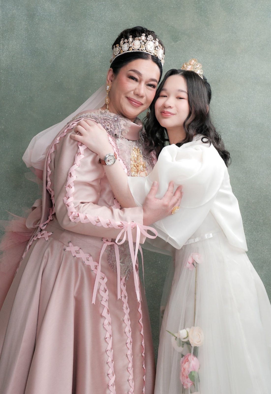 Czarina Ablaza-Syquia with youngest child and only daughter Azia. Both are wearing cameo-encrusted tiaras designed by Jun Jun Ablaza.