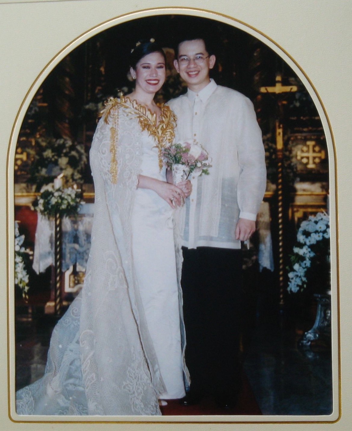 Original wedding photo of Czarina and Jofe, both wearing Ben Farrales