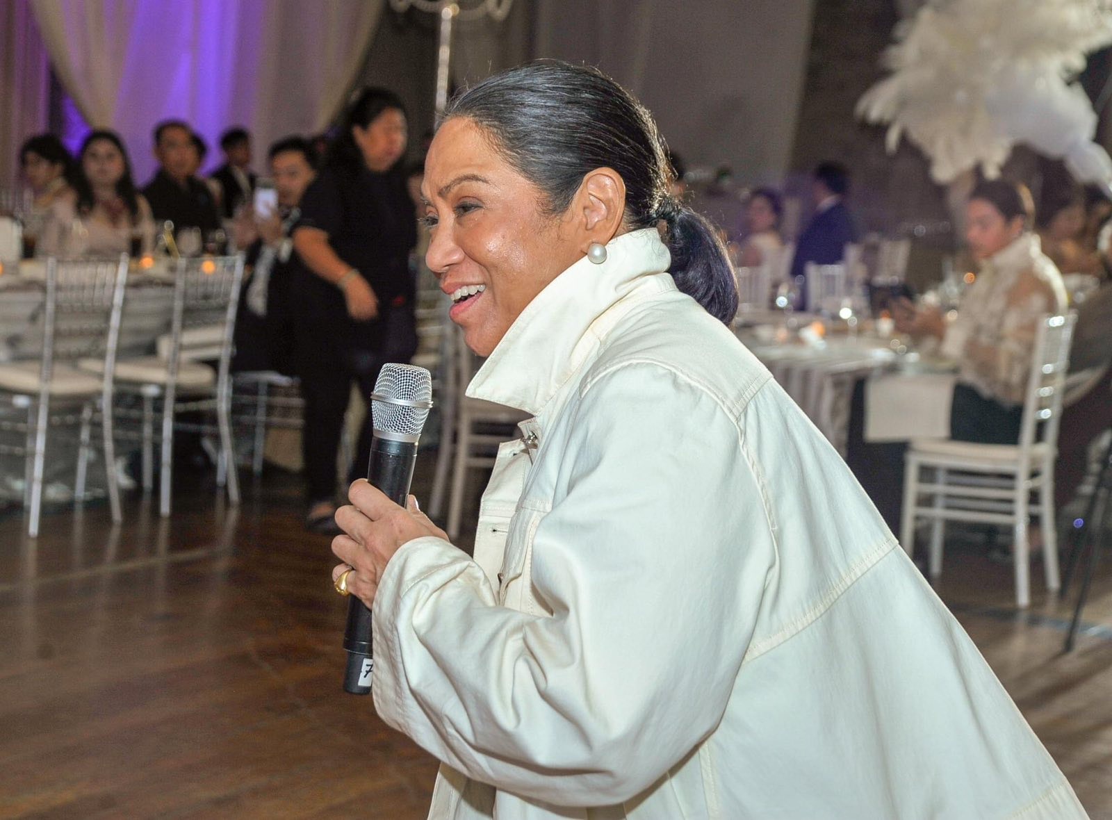 A four-tiered cake with delicate fondant icing was accompanied by flutes of champagne. The towering all-white confection certainly brought back memories of the Syquia’s wedding celebration 25 years prior.