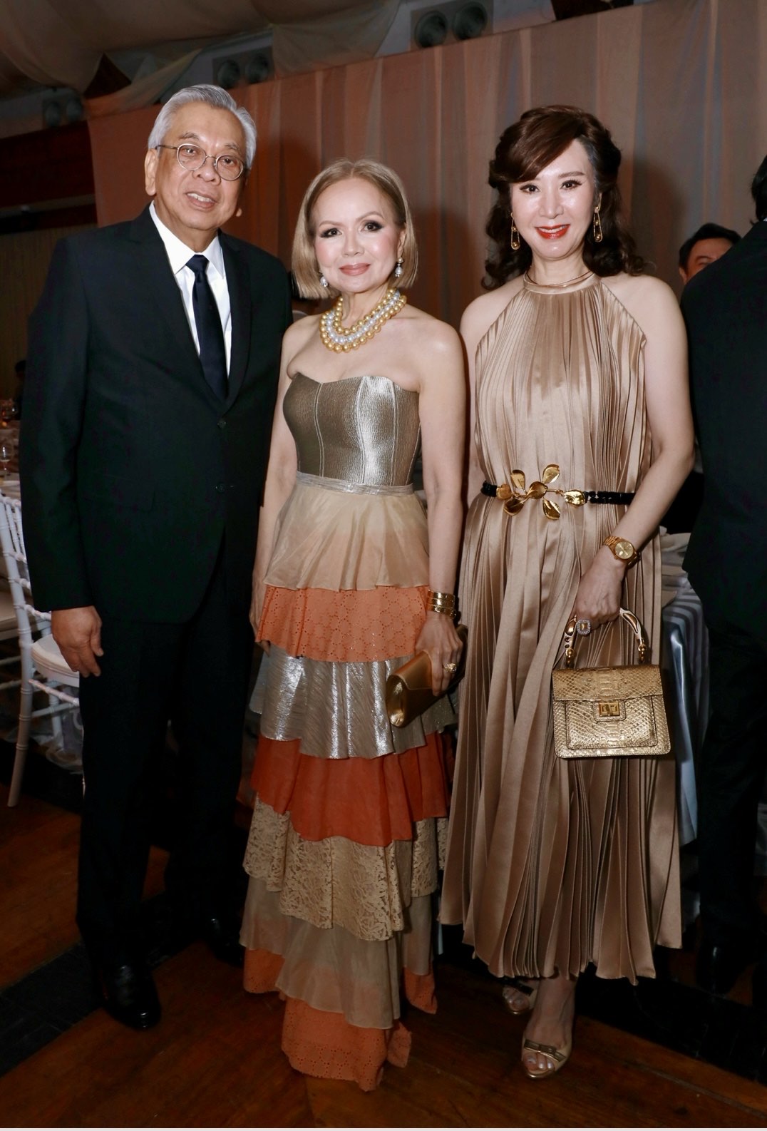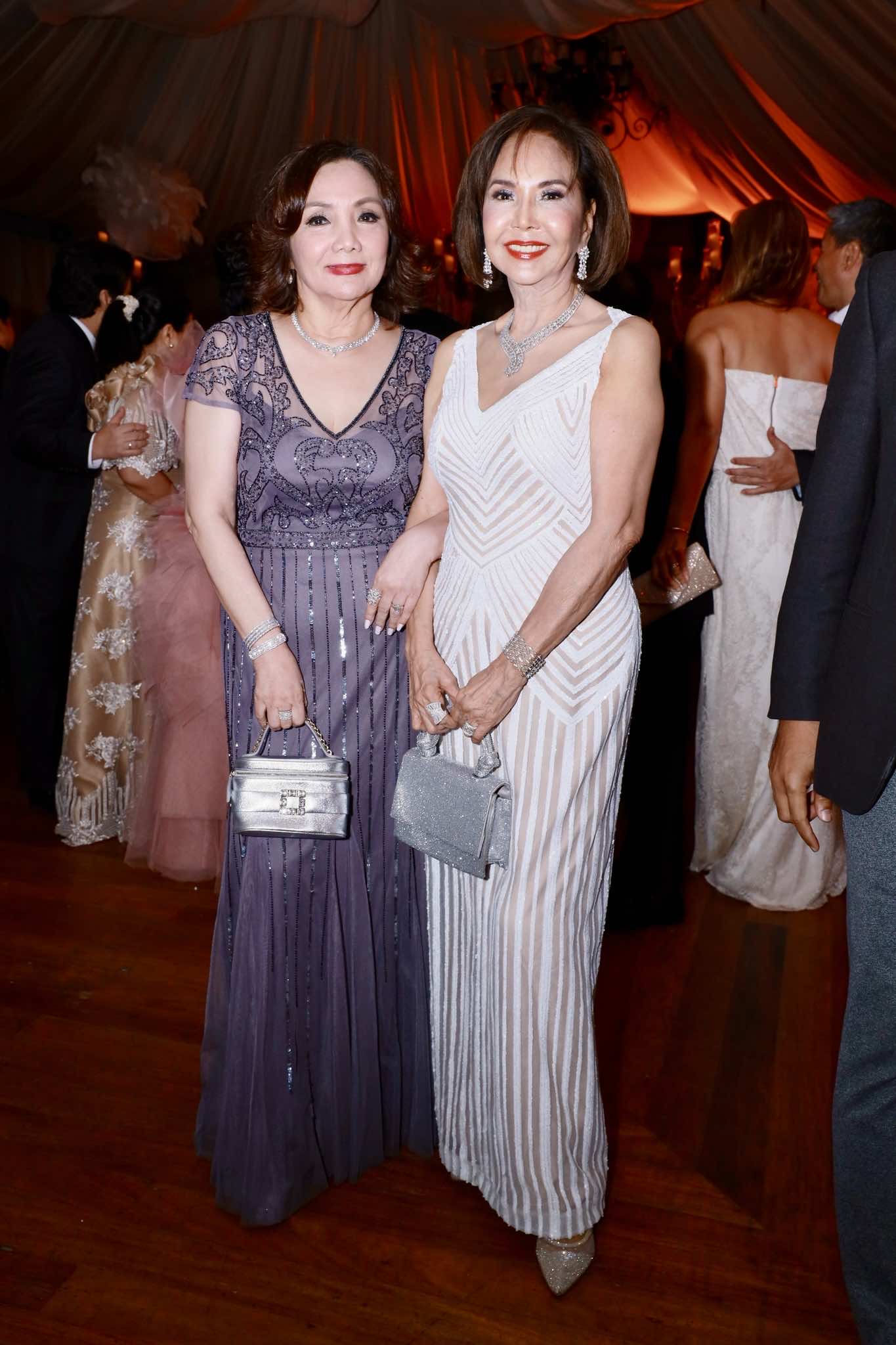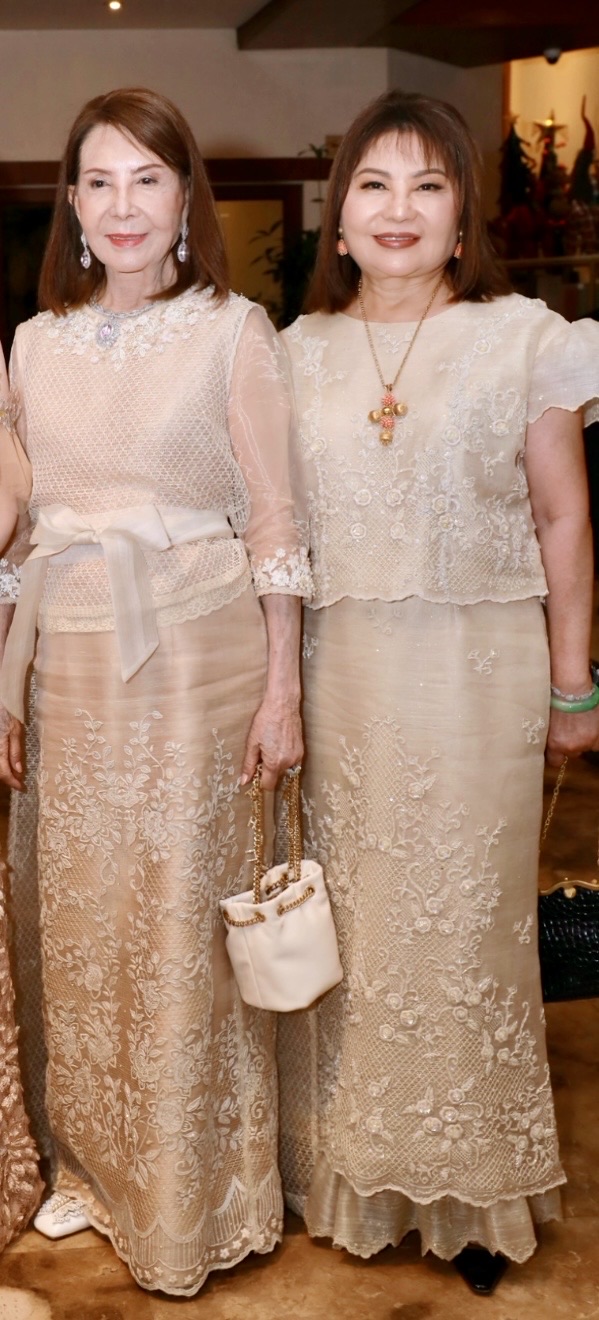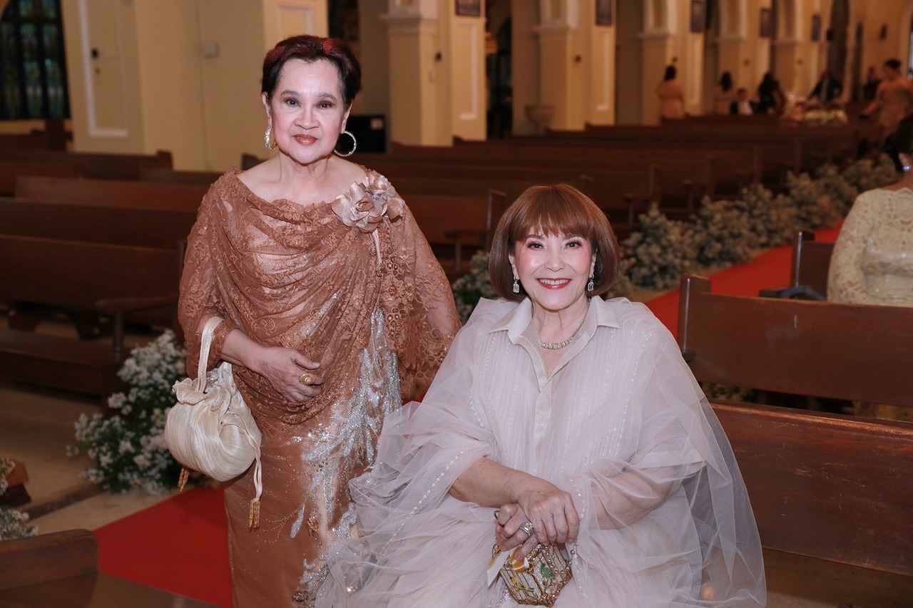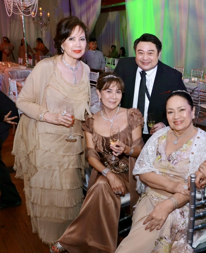 Adhering to the theme, several guests wore frothy tulle or lace numbers, foremost being Czarina’s mother, the fun-loving Consul Mellie Ablaza in a beautiful layered ivory tulle gown by Jo-Ann Bitagcol and Jofe’s mother, Letty Syquia in a beige-toned lace gown and pearl strands. Meanwhile, some were dressed in empire-cut gowns reminiscent of Bridgerton’s Regency era. Spotted among them were lovely ladies Marivíc Vazquez, Suzette Hahn Lopez, and Mimi Tan who went the extra mile to follow the evening’s motif.