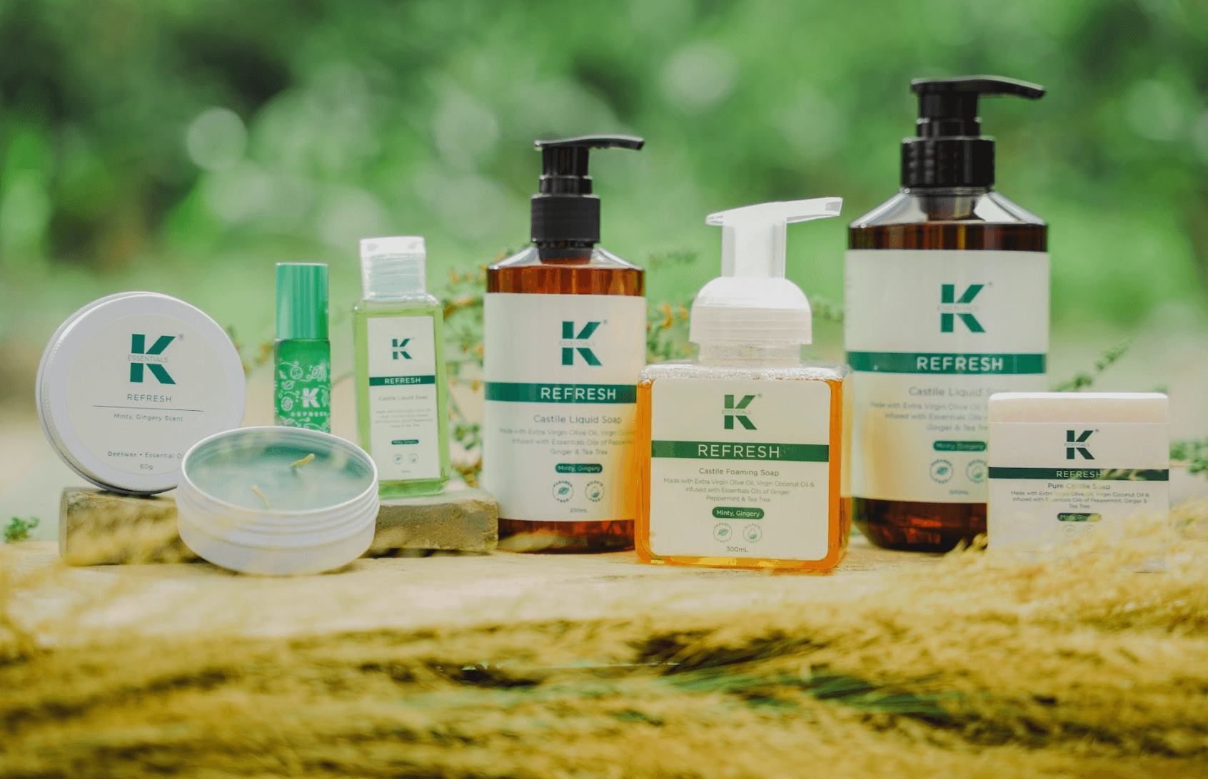 K-Essentials now offers a range of products, including liquid soap, foaming wash, bar soap, candles, and diffusers, all made with natural ingredients that are sulfate and paraben-free.