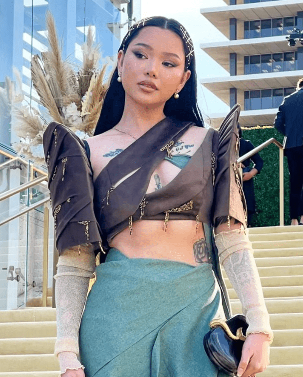 Filipino-American star Bella Poarch, who rose to fame on TikTok, wore a Terno ensemble designed by the 2022 Ternocon winner Hannah Adrias. She also worked with Filipino fashion stylist Nikko Panti.
