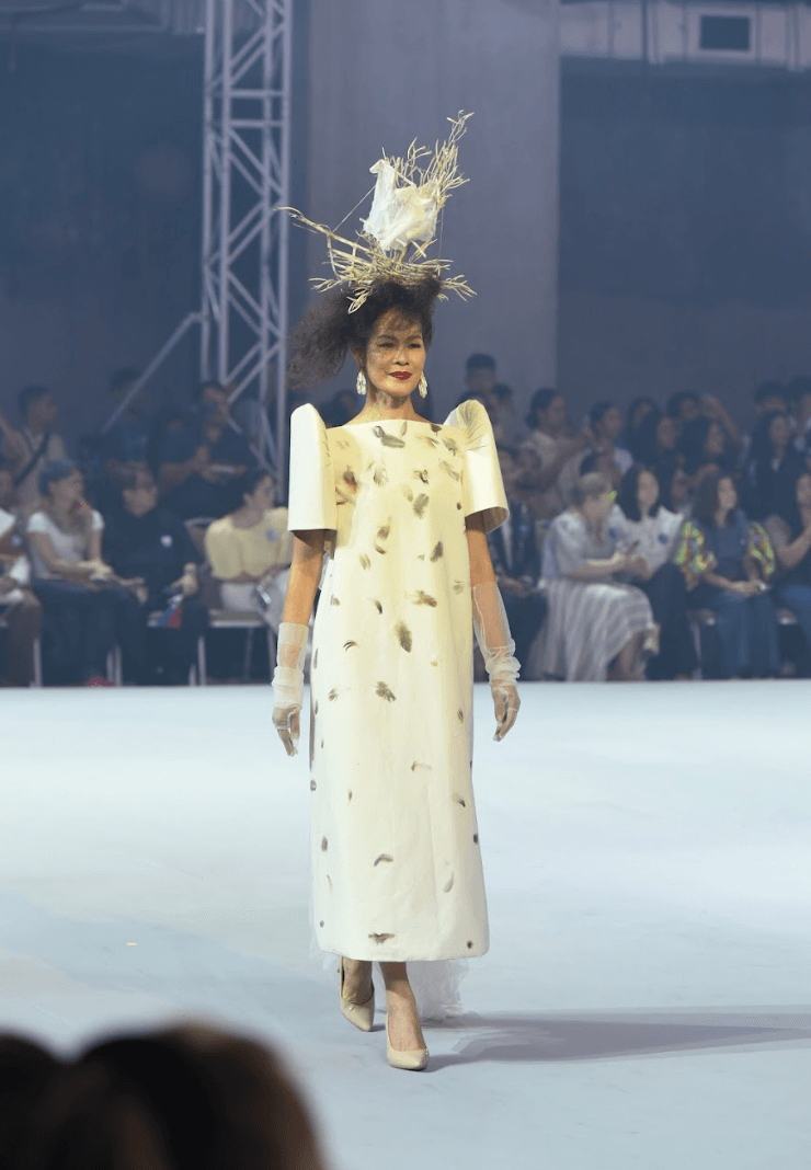 Lloren explained, “First of all, my inspiration was my mother. The collection is my tribute to her and our motherland. I wanted to transform all the difficult things I witnessed during the last 8 months of my Mommy’s life (from the doctor’s prognosis, the tumor, the pain, the blood, the distensions, dry skin, to her last breath) into something beautiful. We experimented a lot with surface treatments on fabrics, although in the end, we weren’t able to do all of them due to a lack of time as we only started production on May 23.”