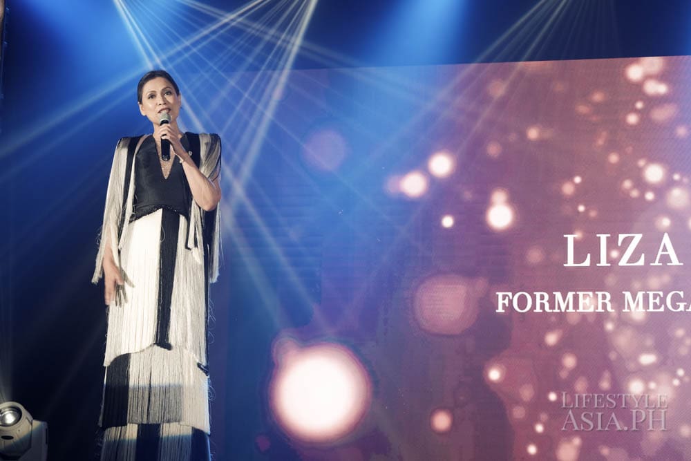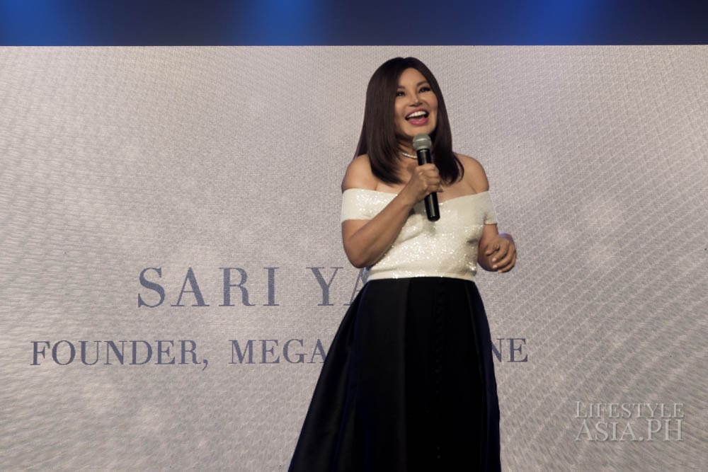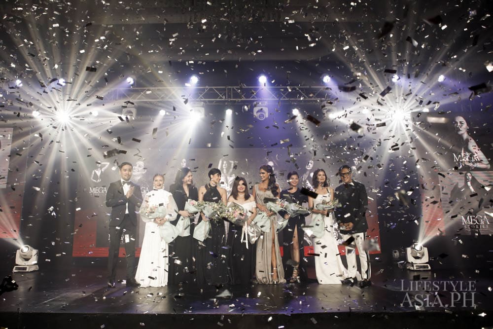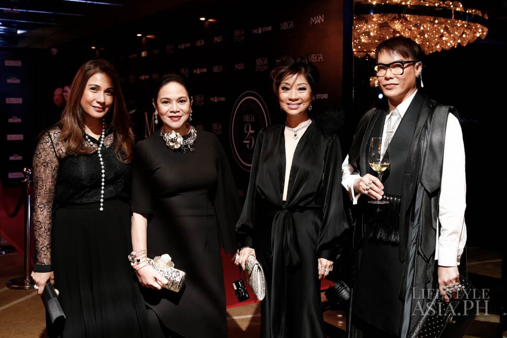 The reception continued inside the ballroom where images of iconic MEGA covers were installed on the walls. An eight-course sensory dinner was served during the program that involved friends and longtime collaborators delivering nostalgic speeches to honor “The Philippines’ Best Fashion Magazine”. One Mega Group Chairman Jerry Tiu reminisced on the humble beginnings of MEGA, which was part of Founder and President Sari Yap’s college thesis written in Spanish. When she was called onto the stage, Sari was greeted with a standing ovation for her contributions as a pioneer in the Philippine publishing industry. The night also marked the launch of the Mega Stories coffee table book, which chronicles the magazine’s colorful history. 25 successful ladies deemed as the Iconic Mega Women graces 25 different covers for the book. They were present at the event and took center stage for a photo opportunity.