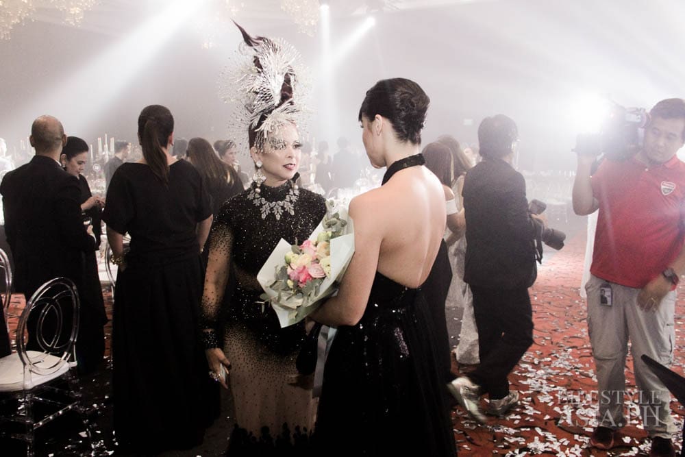 The festivities for MEGA magazine’s silver anniversary began at noon when social media was flooded with anecdotes and well-wishes by the fashion industry’s biggest names. Designers, noted models, cover girls, editors and style lovers all shared their #MegaStories online, recounting special experiences they have had with the magazine in the last 25 years. It all culminated to an exclusive gala held at the Sofitel Philippine Plaza that evening. Women in floor length gowns and men in black tie attire walked the red carpet where a sea of photographers waited to capture interesting outfits through their lenses. At the foyer, the flicker of camera lights still did not stop as old and new friends paused to take selfies while enjoying overflowing cocktails from one of the three bars.