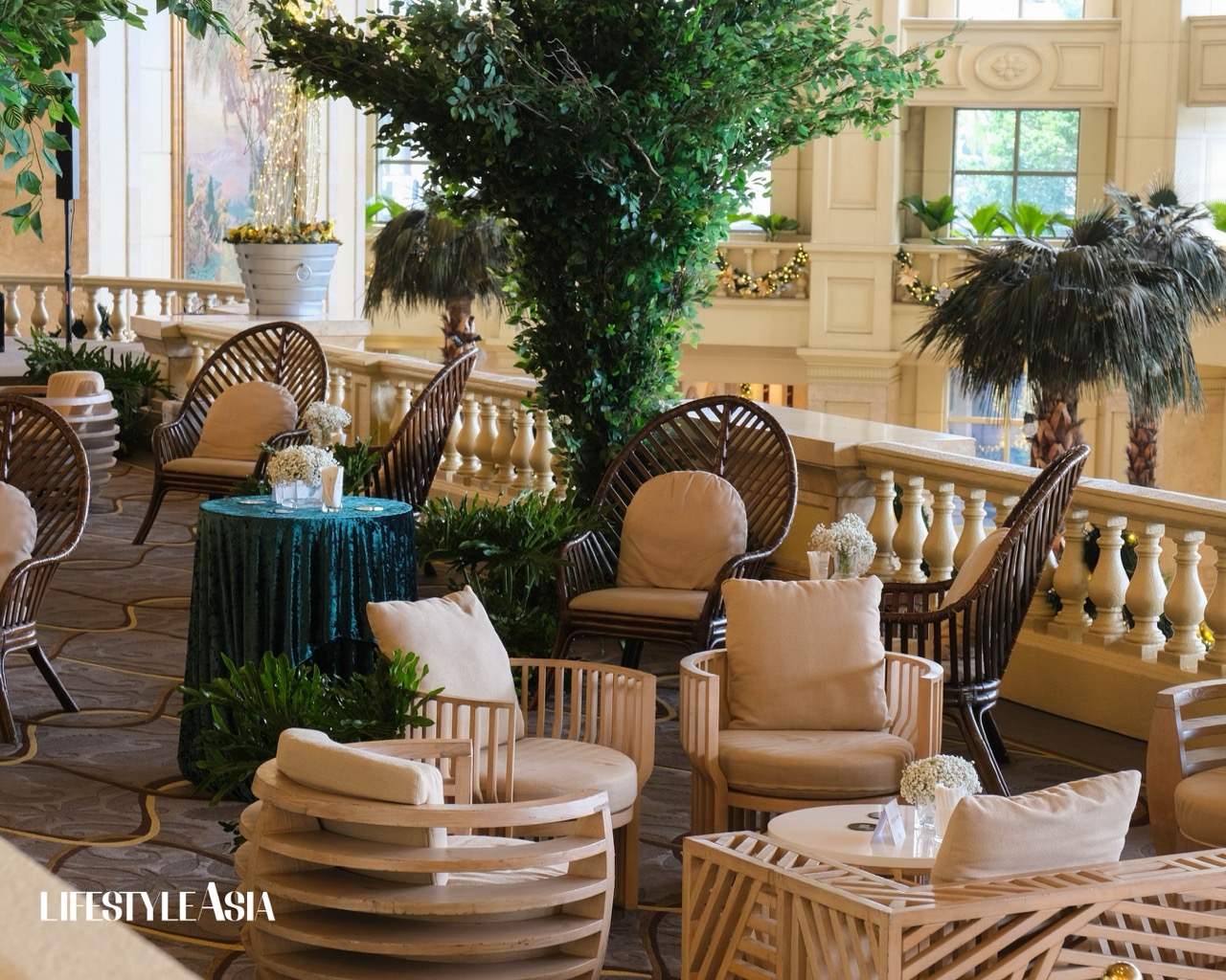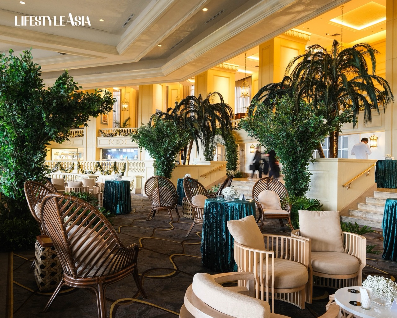 The Peninsula Manila’s Upper Lobby and Conservatory were transformed into an enchanting garden, with lush greenery enveloping the space. The Upper Lobby became the social hotspot of the afternoon, buzzing with conversations and laughter as guests enjoyed cocktails before the program started.