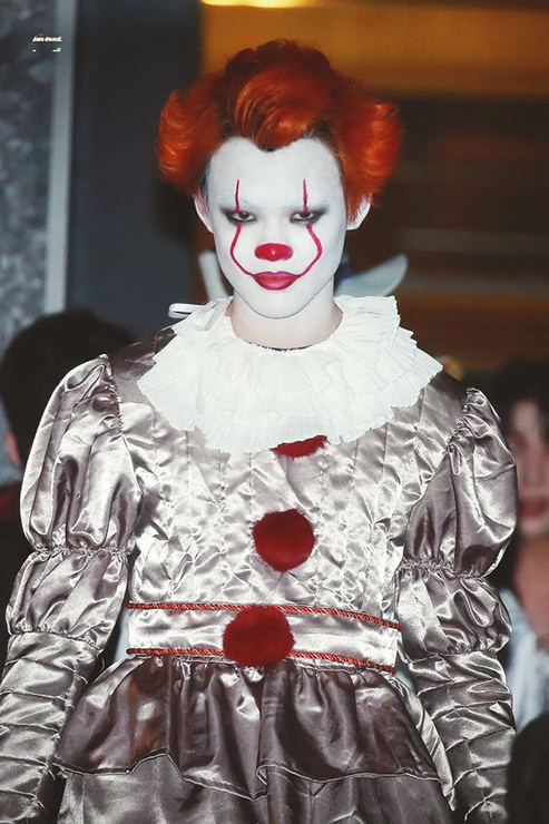 According to Chenle, the makeup took five hours to do, he dyed his hair orange just for that day and scared his mom when he returned home. It was all worth it though because he also won a prize. A few days ago, Chenle was dropping hints on social media about what he will be wearing: it will be a female character, lots of makeup, and also from a scary movie. We can’t wait.