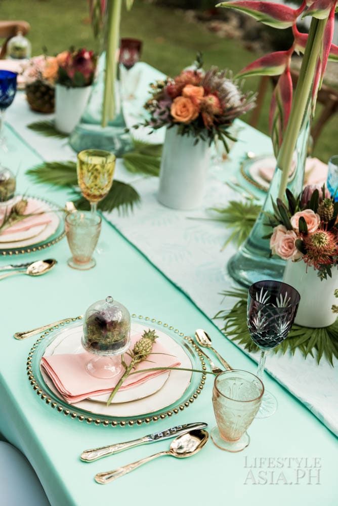 Keri’s settings are decidedly simple. Before guests arrive for afternoon delights in her home, she typically takes one more look at the set up to ensure that everything is to the tee. “I think these throw pillows are a little too much. They were supposed to be part of the set up for guests to take home along with the plants that I placed on the plates. I think I’ll just hand them over at the end of the event,” she decides. While restrain is a quality distinct to Keri’s get-togethers, she shares that creating themes add to the joy of entertaining. “I enjoy doing research for a particular look and what food to prepare. I make sure my themes are different from the last party.”