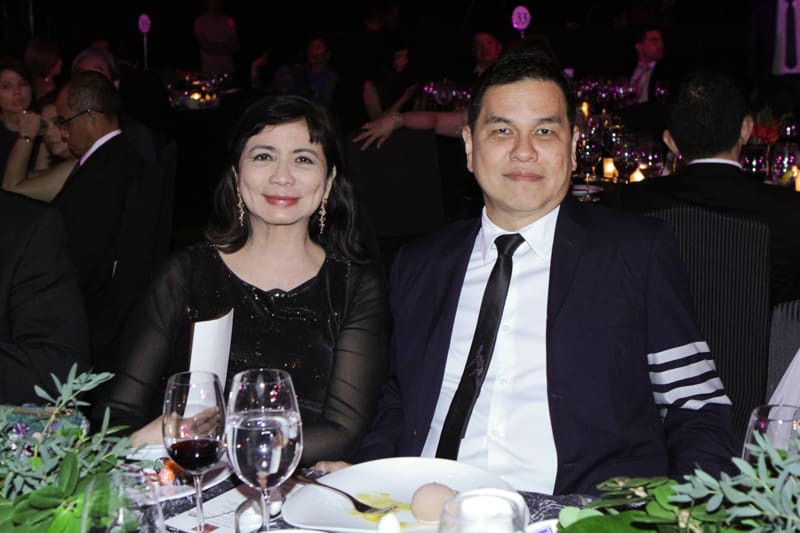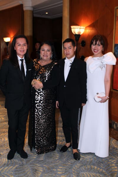 The Rizal Ballroom of the Makati Shangri-La Hotel was transformed into a dark and elegant setting with multi-leveled platforms and a plethora of red roses for the 7th Red Charity Gala. Co-Chairpersons Tessa Prieto-Valdes and Kaye Tinga once again put their resources and connections together to organize an event that raised close to 5 million pesos for the Philippine National Red Cross and Assumption HS Batch ’81 Foundation. Guests that evening enjoyed a four-course dinner, while Arthur Manuntag and his son Sean and chanteuse Aliya Parcs serenaded the crowd. As a special treat Tessa surprised everyone when she came out to sing “The Lady Is A Tramp” with Arthur.
