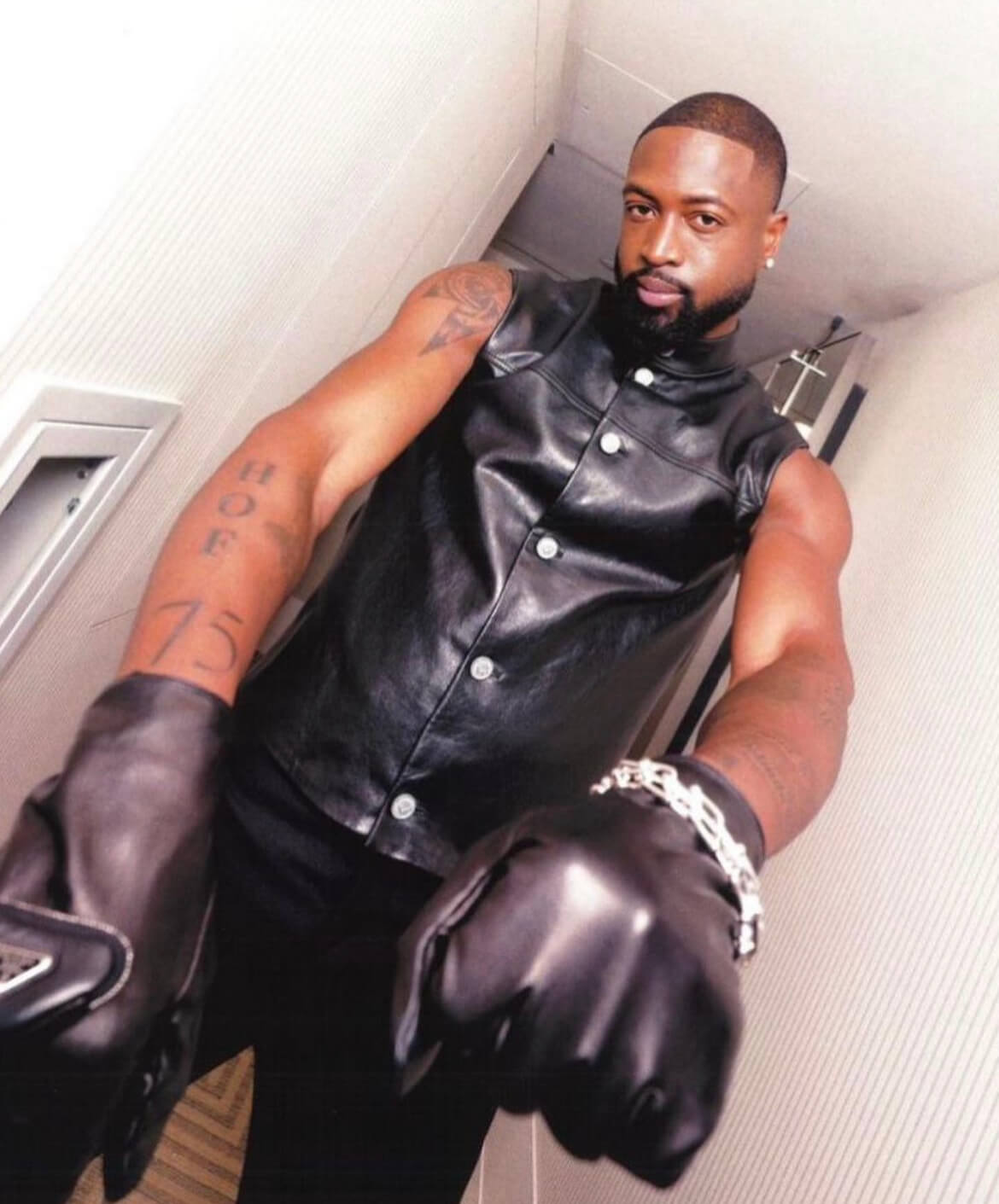 Wade in Prada gives a nod to Karl Lagerfeld, the commander of leather and capes. “Haven’t Met a theme I couldn’t handle,” shared by Wade in an Instagram post.