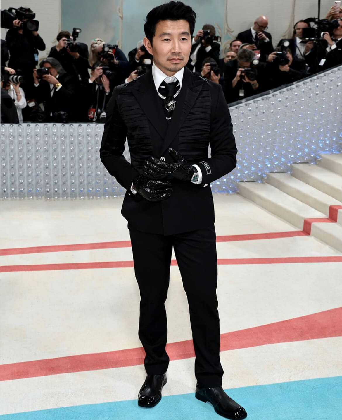 Liu embraced the iconic image of Karl Lagerfeld himself, in a custom Versace suit. If we’re talking about black suit and tie, better serve like Simu Liu.