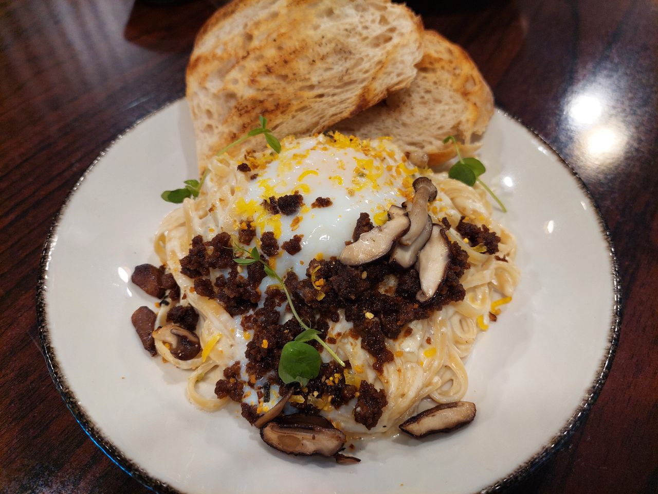 Astrological-themed BGC café Kas & Poly has teamed up with food concept Brunch Bureau for a special line-up of brunch classics from 7:00 AM to 6:00 PM. These include innovative spins on Filipino breakfast and lunch favorites, like the Brunch Bureau Benedict (topped with fried tocino, fried spinach, eggs and torched dalandan hollandaise over buttery toasted banana bread and served with spicy truffle honey) and Manila Carbonara (creamy linguine with sausage crumbles, mushrooms, cream sauce, and poached egg with cured egg yolks).