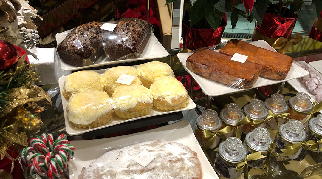 A visit to Marquis this holiday will not be complete without checking its Christmas lobby shop where you can choose gift items from an array of decadent Yuletide goodies. Inspired creations of festive cakes, Holiday Pralines, Gingerbread Houses, Crouquembouche, colorful candied fruit jellies, and a variety of Yuletide cookies are available for you to take home. A good selection of savories packed in elegant gift boxes can be pre-ordered. Holiday treats can be delivered to you as well.