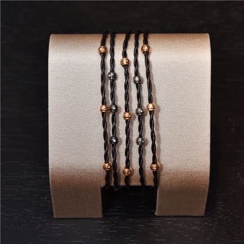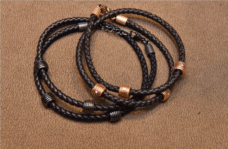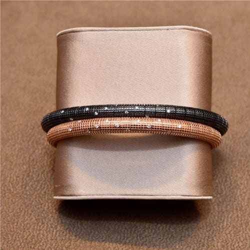 The Metropolitan Dream by H. Nakata is a sporty and elegant collection that consists of 21 references of necklaces, bangles and bracelets in pink gold and black gold versions with diamonds. The bracelets are made of woven leather with one or two spirals around the wrist that can be worn alone or combined.