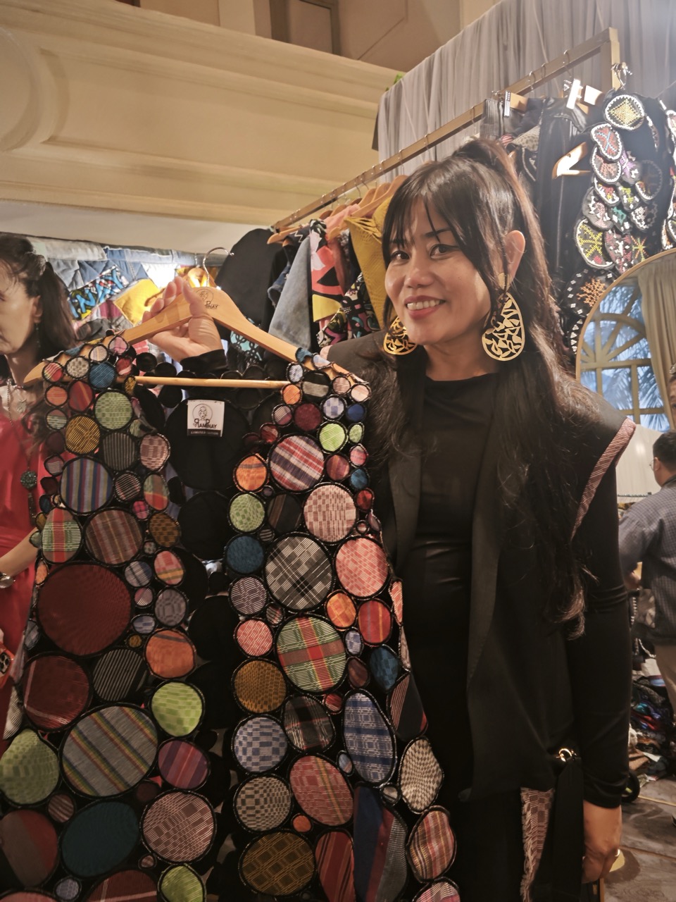 PamPinay is an edgy take on the traditional Filipiñana. Pam, the owner and designer of the brand, creates asymmetrical, modern, and flamboyant pieces. Moreover, they are also an uber-sustainable brand—they have pieces made of circular cutouts of indigenous Filipino weaves. This came to fruition when they wanted to fully utilize even the excess fabrics and indigenous weaves.