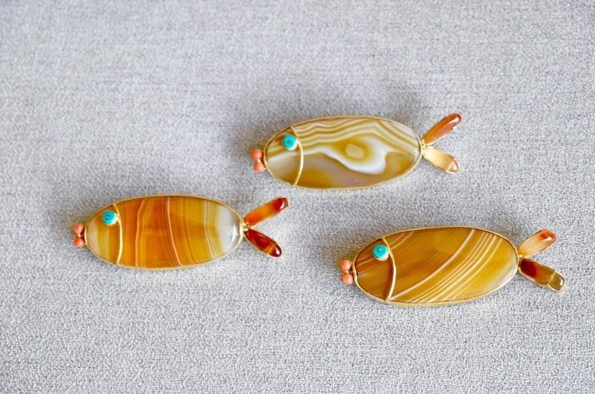 Tweetie de Leon-Gonzalez and her Sardine Brooch in Citrine / Photo via Instagram @tdlgdesigns
