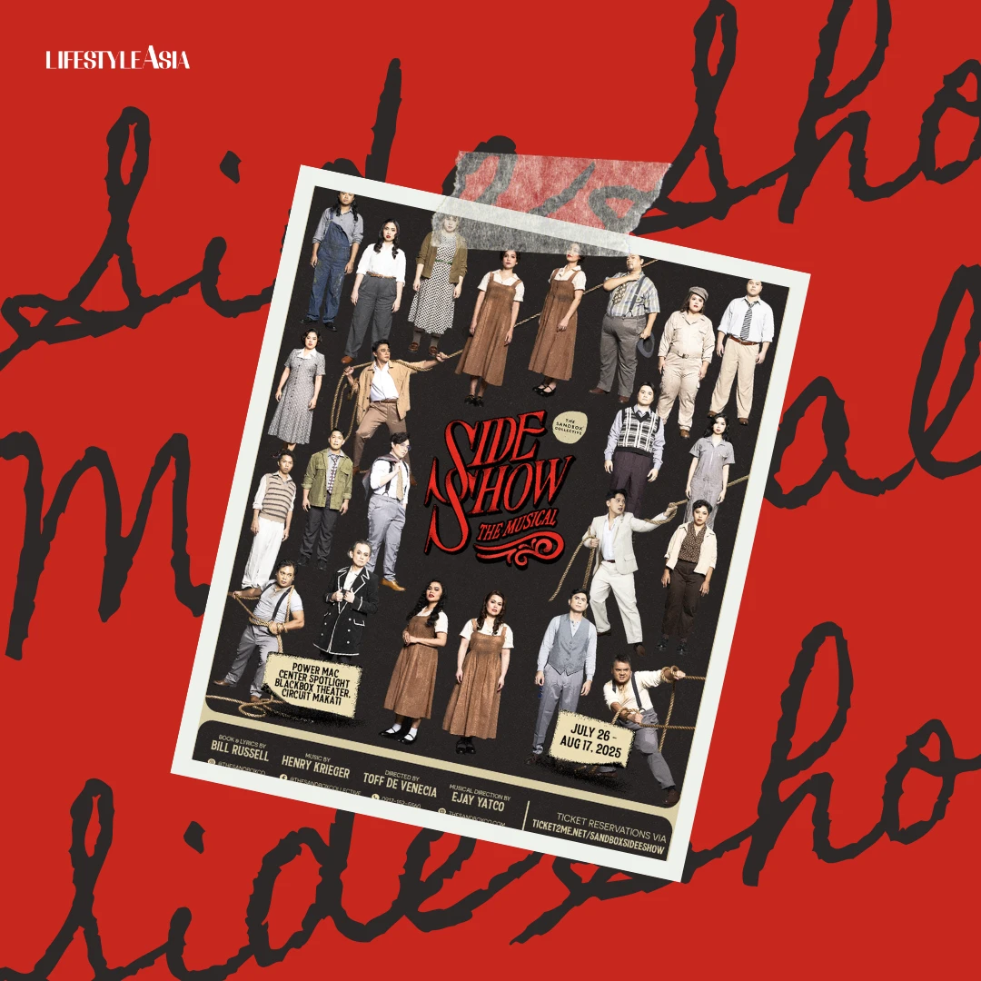 Side Show: The Musical opens on July 26, 2025, and will run until August 16, 2025, at the Power Mac Center Spotlight Black Box Theater in Circuit Makati. Tickets are available online at https://ticket2me.net/sandboxsideshow.