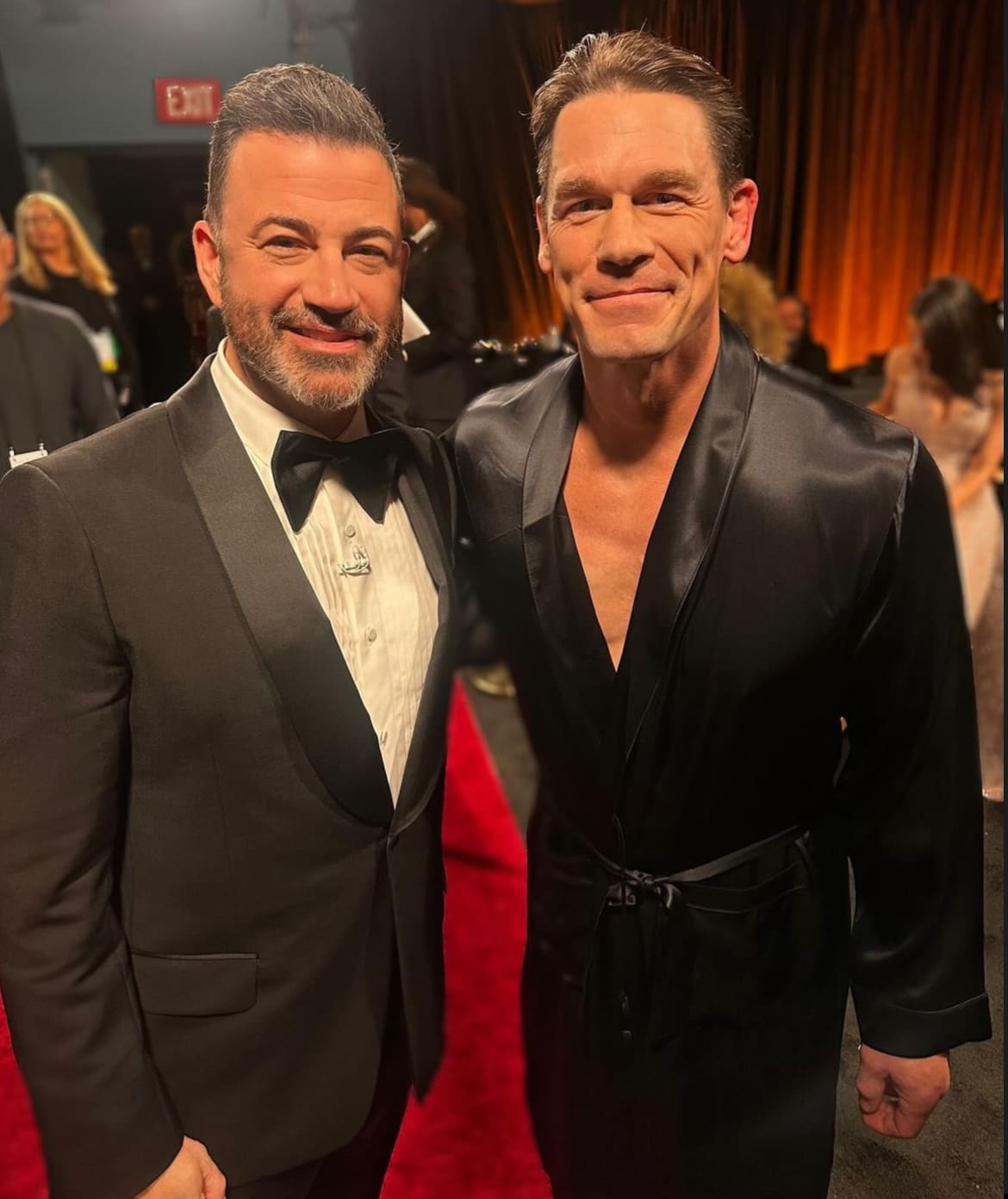 He was there to present the Best Costume Design award, which went to Poor Things. Cena joked about the importance of clothes before host Jimmy Kimmel threw him a gown to cover up, creating a fun and humorous moment.