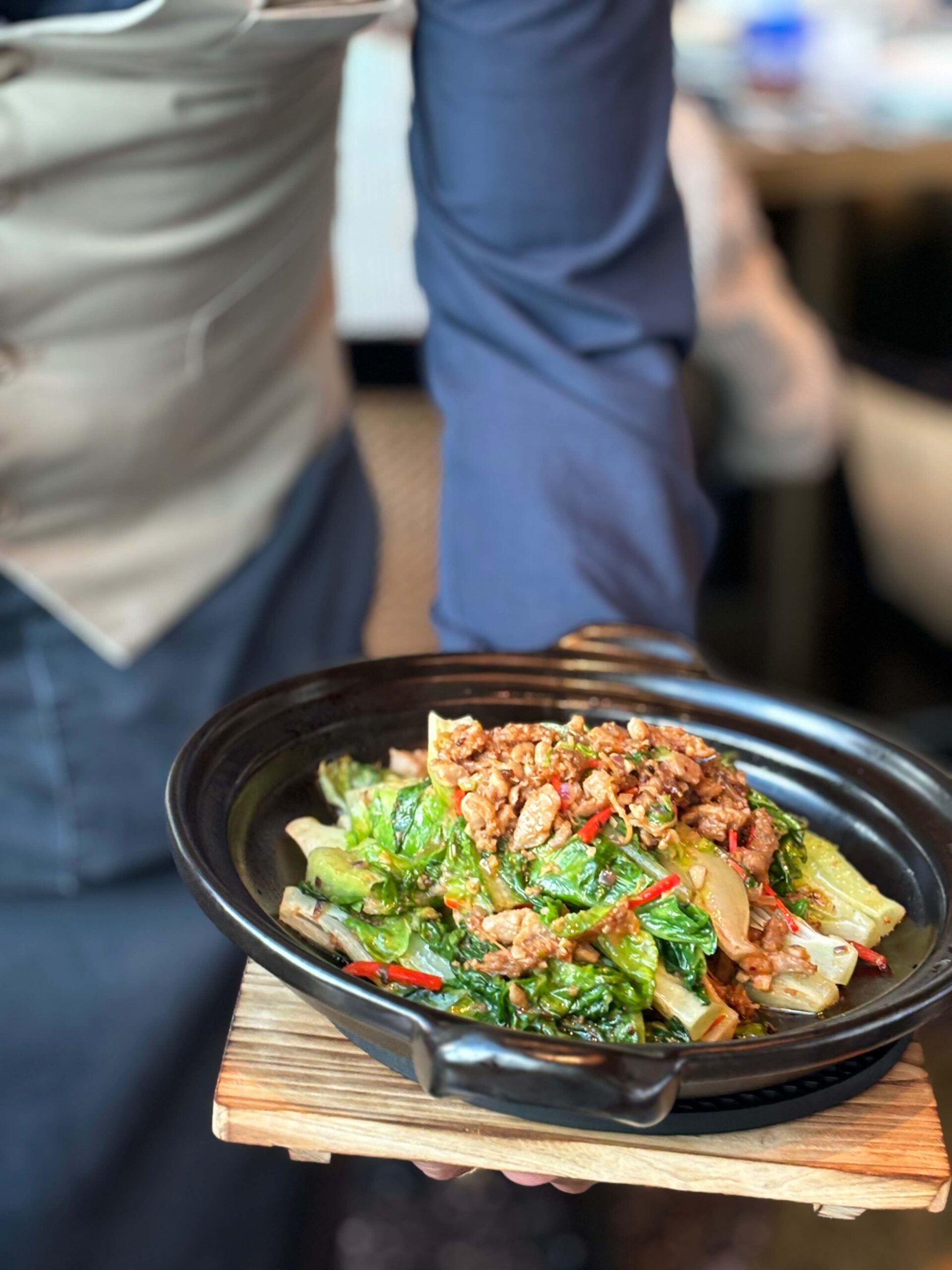 Wok Fried Romaine Lettuce, Dried Shrimp, Minced Pork, Shrimp Paste