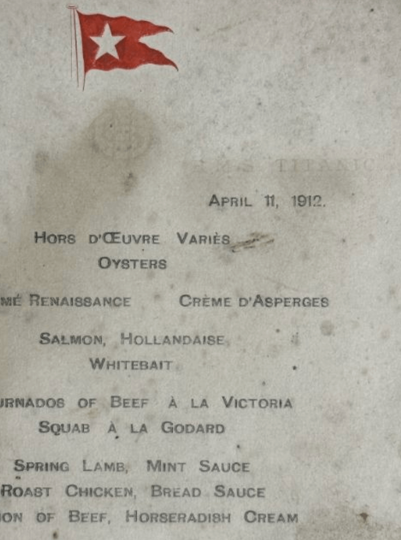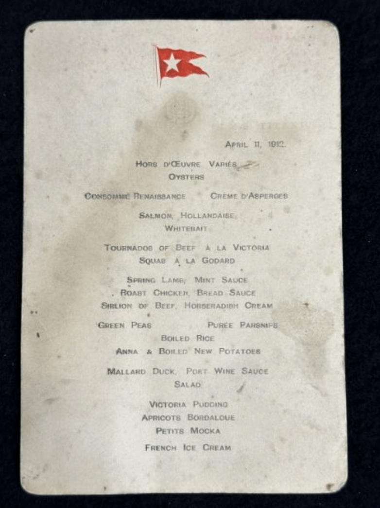 Notably, the auction house reported that a few menus from April 14, the fateful night when the Titanic struck the iceberg, still exist.