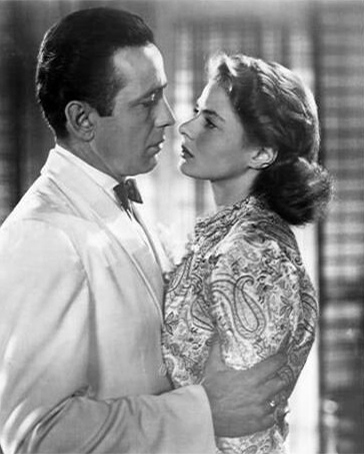 But—a situation summarized by Bogart’s line, “Of all the gin joints in all the towns in all the world, she walks into mine”—entering Rick’s restaurant accompanying Laszlo is Ilsa Lund (Ingrid Bergman), Rick’s former lover. And so starts the romantic knot that has gripped us over the decades.