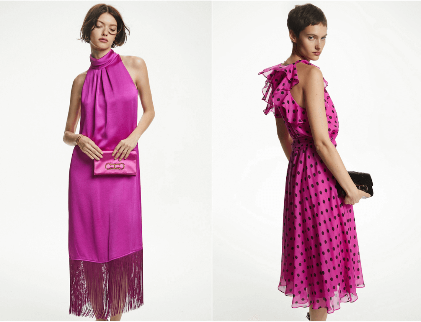 If there’s one color we can’t help but associate with the month of love, it’s pink. Be it a bold and bright magenta, or a pale blush, this feminine hue is guaranteed to charm. For Valentine’s Day, a pop of fuchsia for date night is sure to leave a lasting impression. We love these pretty frocks from Carolina Herrera, that will look fantastic all year round.