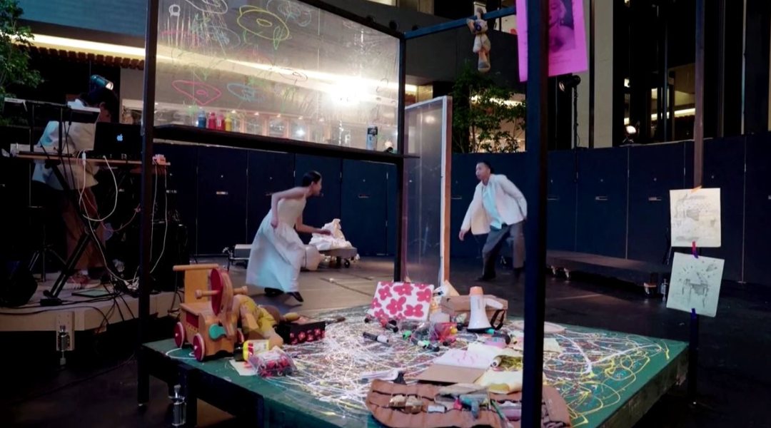 At the start of the performance, audiences don’t sit back and relax—they lean forward and peep into a hole.