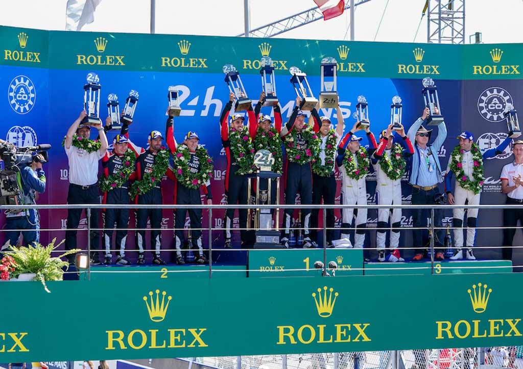 Following the conclusion of this year’s race, the winning drivers stepped onto the podium to receive the 24 Hours of Le Mans trophy and a specially engraved Oyster Perpetual Cosmograph Daytona.