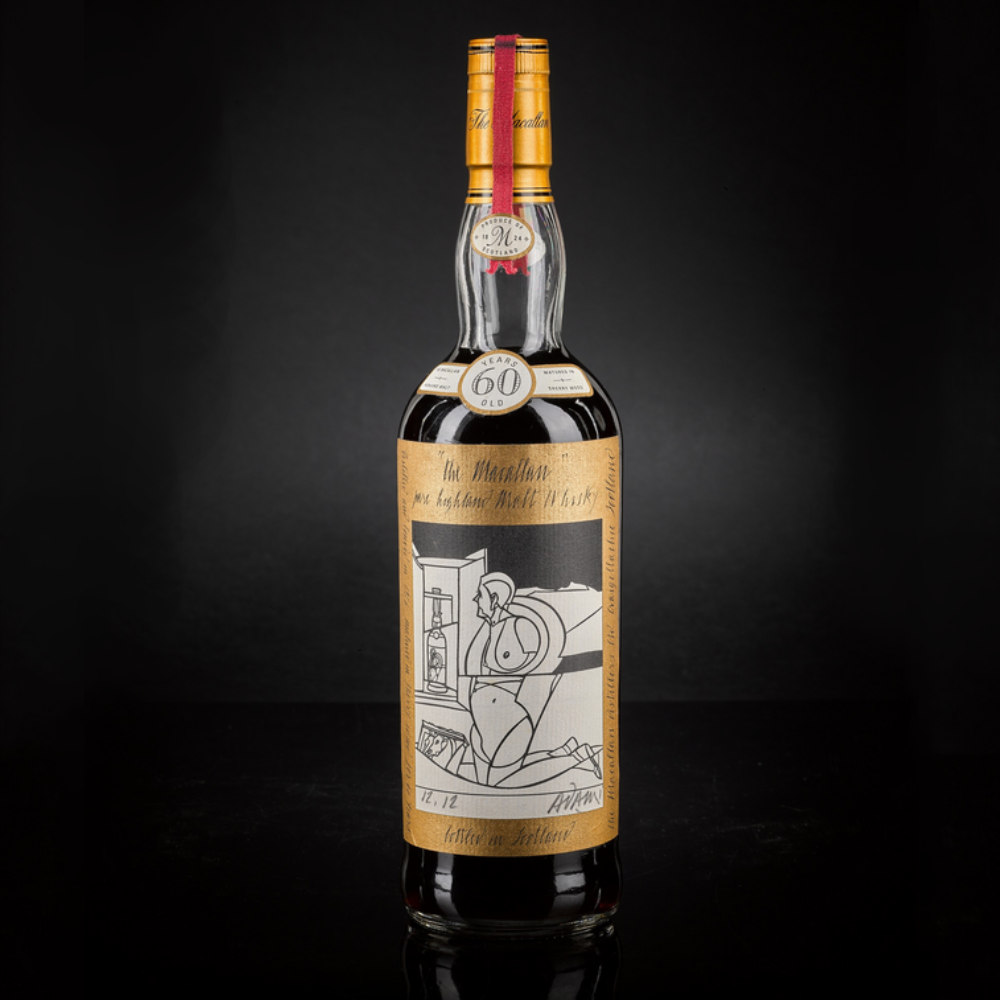 Sotheby’s added that another 14 of the bottles sport the priceless “Fine and Rare” labels (including Sotheby’s record-breaking one in 2019). Two bottles remained unlabeled, though Irish artist Michael Dillon eventually hand painted one of them (another bottle that broke records in 2018 for surpassing £1 million). Lastly, another 12 bottles sported labels designed by English pop artist, Sir Peter Blake.