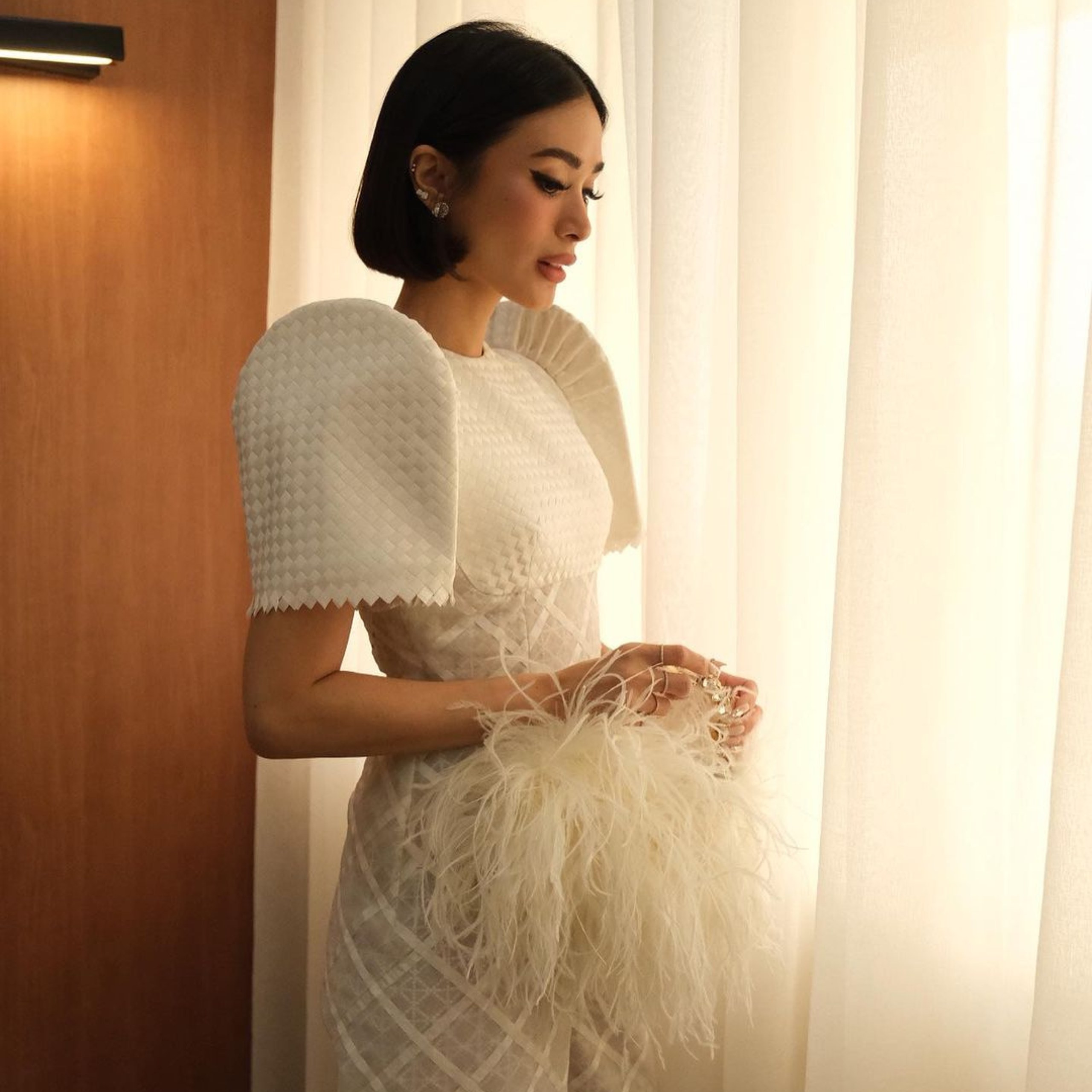 Some guests chose to wear more than one look for this year’s SONA. For example, Evangelista also wore an off-white full banig terno jumpsuit designed by Ivar Aseron.
