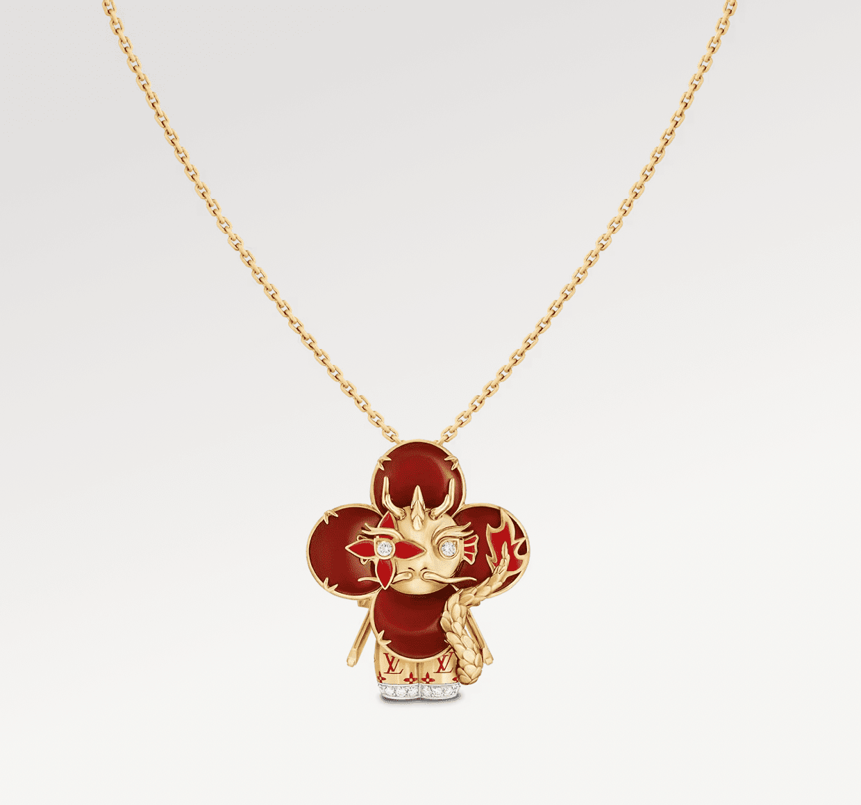 To get in the party mood, Furla’s cruise collection features a bevy of chic apparel and accessories in this fiery hue. Meanwhile, Burberry celebrates this festive time with a line of tartan ensembles and crimson accessories. And for just a touch of red that has maximum sartorial impact, nothing can be more adorable than Louis Vuitton’s Vivienne mascot playfully rendered in a gold and gemstone pendant, with a fetching dragon motif.