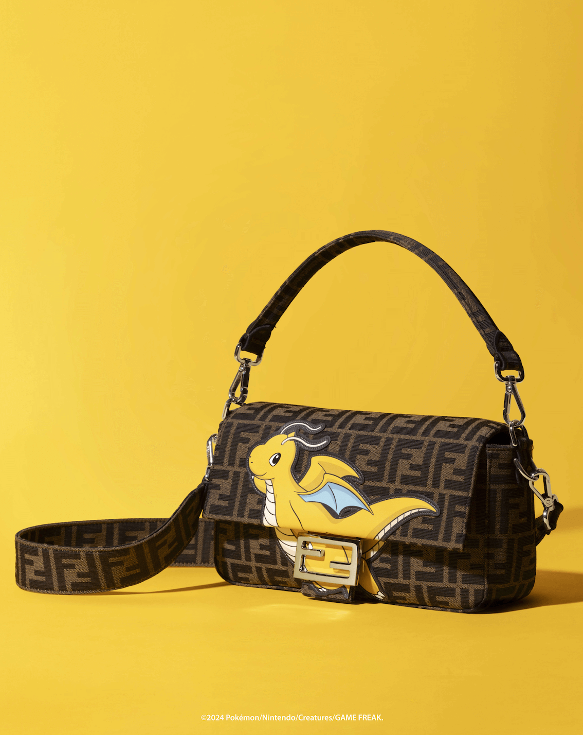 Straddling the realms of designer fashion and streetwear, Fendi’s collaboration with Fragment features beloved dragon-type Pokemons in the brand’s Peekaboo and Baguette bags. Yet another playful take comes courtesy of Bottega Veneta, whose Jodie hobo bags come with a spiked dragon tail handle, whilst its leather totes sport a pixelated dragon motif woven into its signature Intrecciato weave.