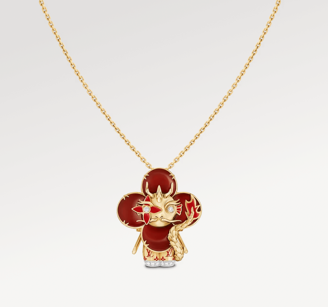 To get in the party mood, Furla’s cruise collection features a bevy of chic apparel and accessories in this fiery hue. Meanwhile, Burberry celebrates this festive time with a line of tartan ensembles and crimson accessories. And for just a touch of red that has maximum sartorial impact, nothing can be more adorable than Louis Vuitton’s Vivienne mascot playfully rendered in a gold and gemstone pendant, with a fetching dragon motif.