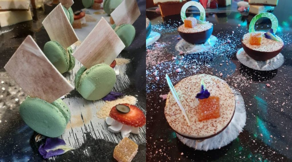 Sweet options delighted the guests with the chefs’ unique and delectable treats. Guests marveled at desserts that came in the shape of a golden egg, chocolate-coated ice-cream balls, and different flavors of macarons garnished with thin chocolate slices. Everyone satiated their appetite with this ultimately mouthwatering food.