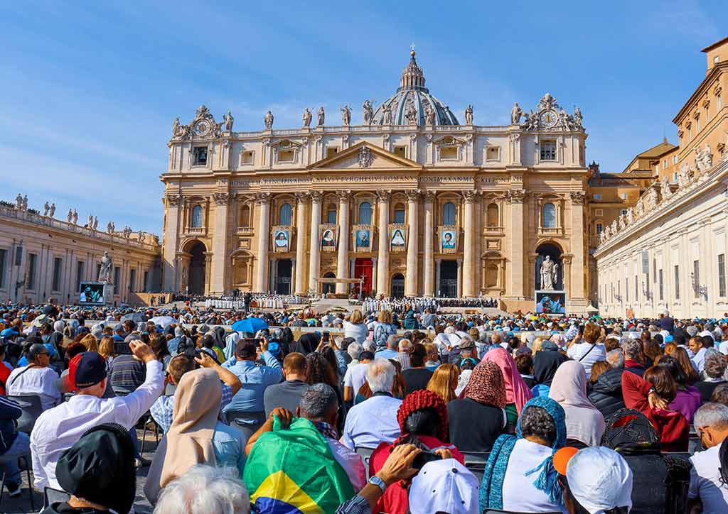 Attendance at the Renaissance-style church was limited to about 2,000 people as there is a resurgence of COVID cases in Italy. This number was still 10 times more than last year, when only 200 were allowed to be physically present at the event.