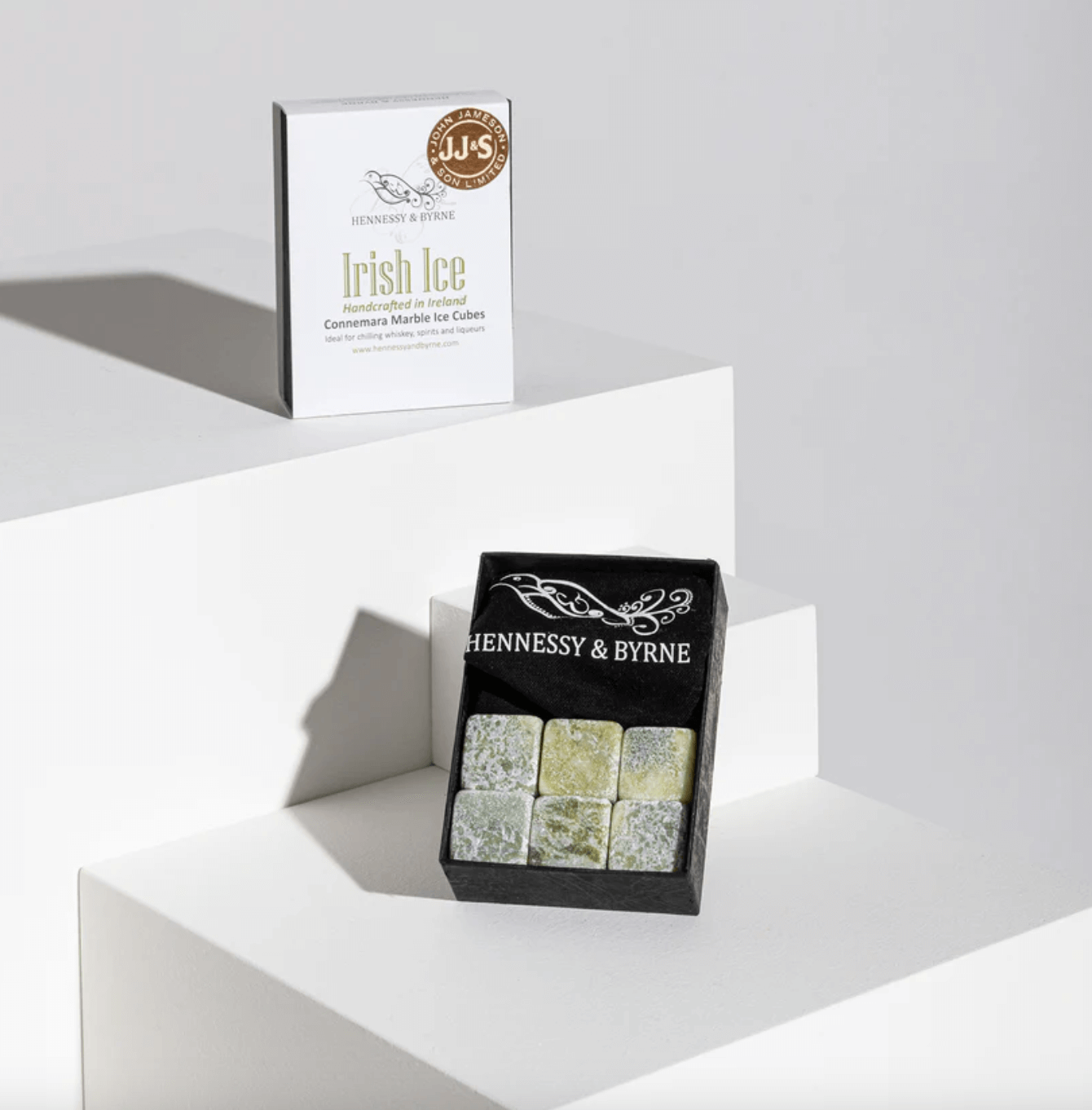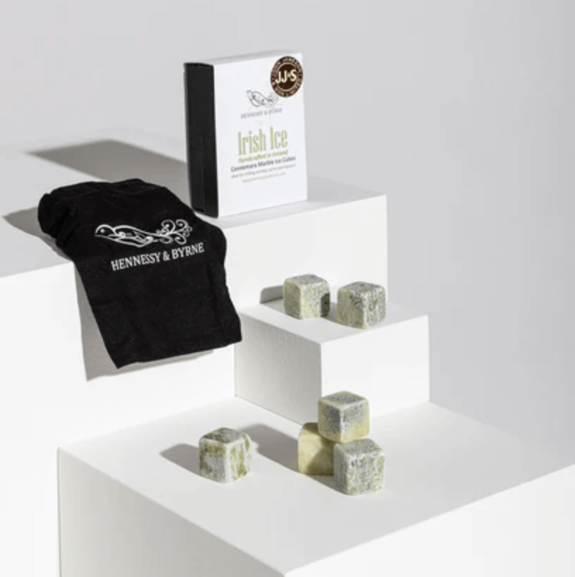 These six unique Connemara Marble blocks cool your favorite drink without watering it down. Simply put them in their cotton bag and freeze them before use for a perfectly chilled glass of whiskey.