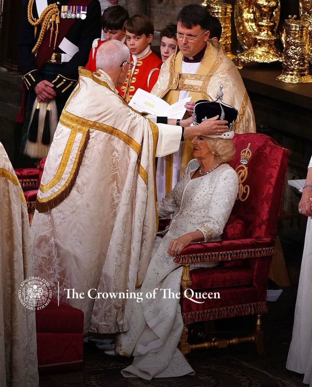 Camilla is crowned with Queen Mary’s Crown. The King’s Coronation is the first since 1937 to include the Coronation of a Queen Consort. This last time this took place was in 1937 when the wife of King George VI, Queen Elizabeth, was crowned as Queen Consort.