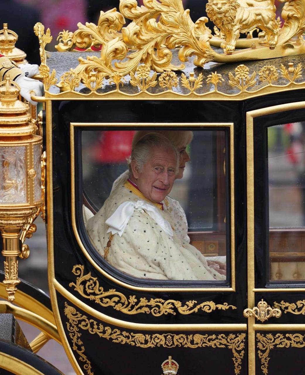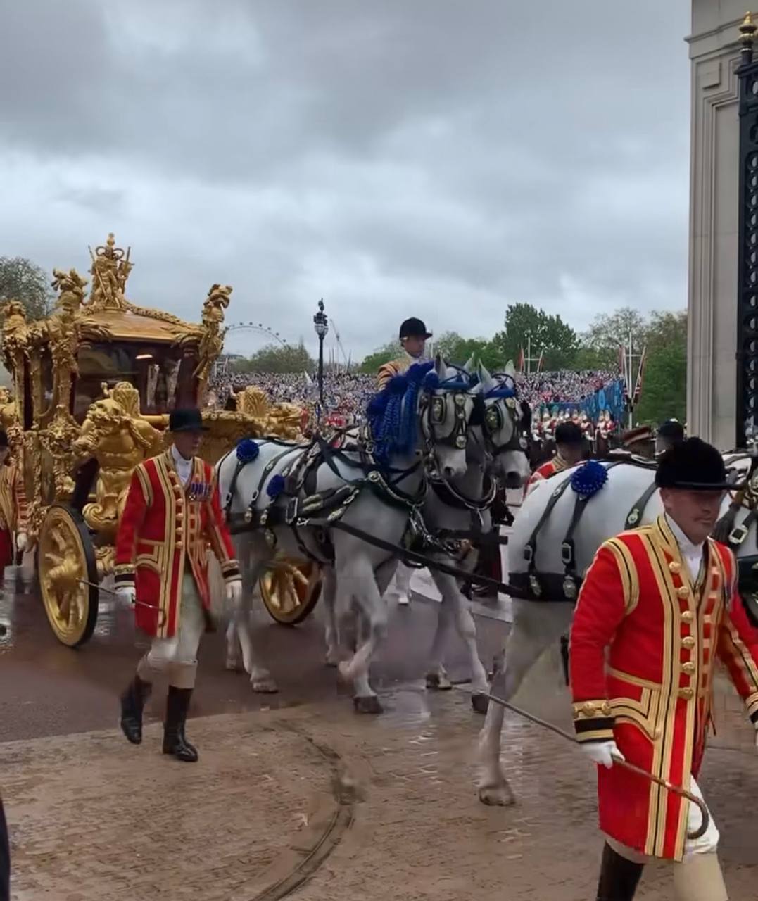 The King and The Queen return to Buckingham Palace for the Coronation Procession as they drawn by eight Windsor Grey horses in the Gold State Coach where they were joined by other members of the Royal Family for the much-awaited balcony appearance.