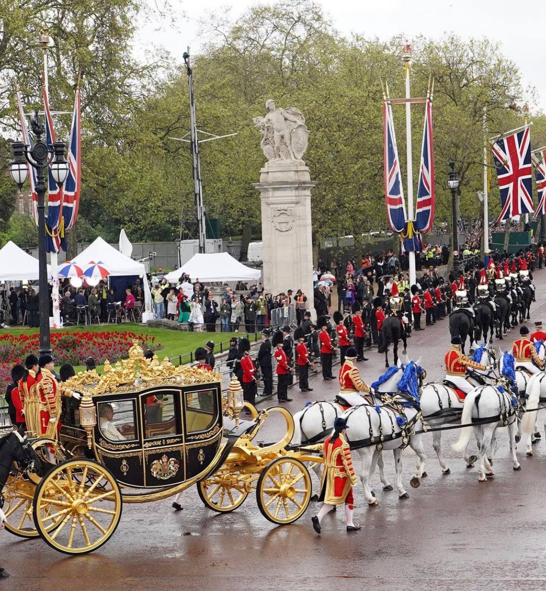 Following Their Majesties’ Coronation, The King and Queen process through Westminster Abbey before returning to Buckingham Palace.