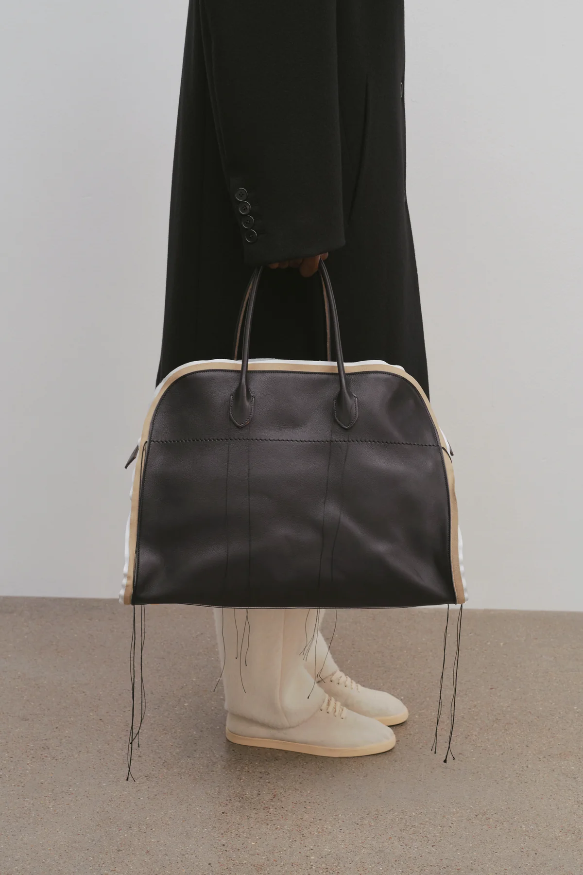 Branded as the new “It” bag of 2024, The Row’s Margaux is perfect for the overstuffed style. The tote-shaped bag is designed for putting all your daily necessities on the go. The minimalist design is an ideal canvas for putting different accessories to make it look worn and used.