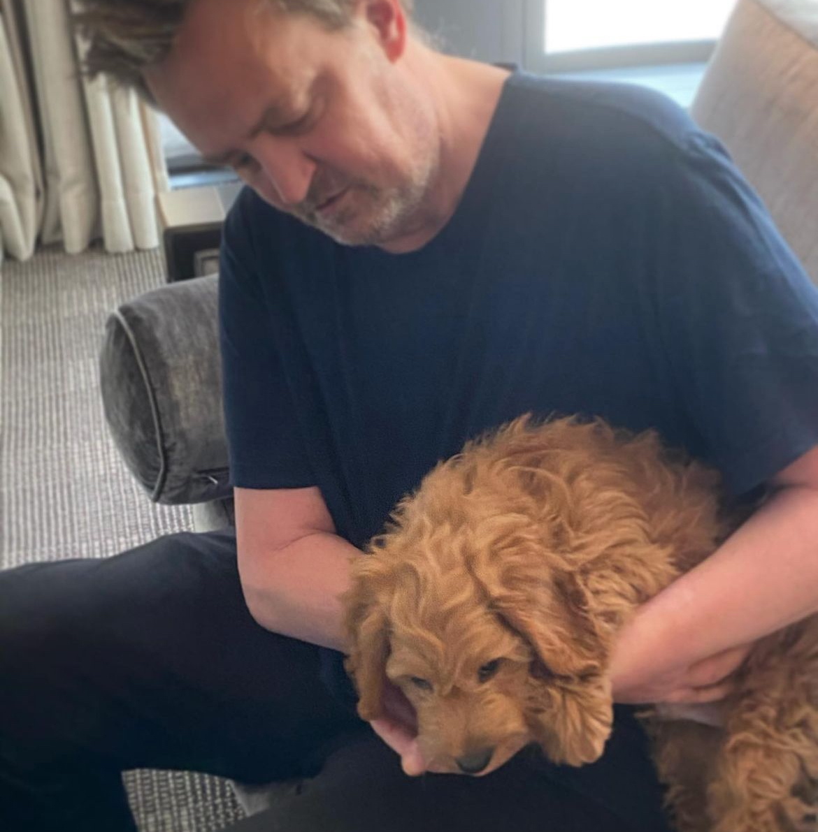 Matthew Perry, the late actor best known for his role as Chandler Bing on Friends, introduced his golden doodle puppy, Alfred, to the world in January 2021.