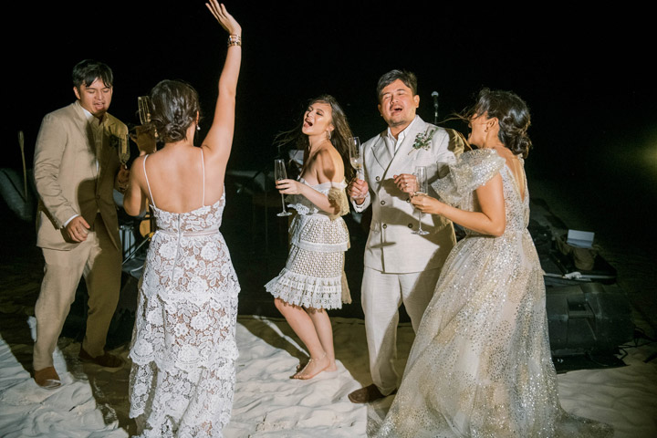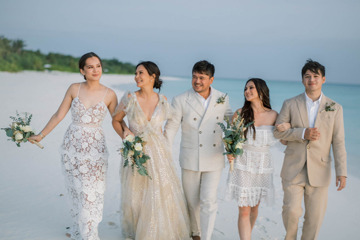 But the pandemic gathered us all together last December. That was when we really started planning it, just four months before the pandemic. Aside from the short time frame, major challenges integrated with the pandemic involved prudential decisions not normally made online. But virtual indeed were sourcing the clothes—without seeing the fabric and design in person!)—meeting with Amanpulo’s event coordinator Vincent Del Rosario, and gathering our videographers, musicians, and photographers.