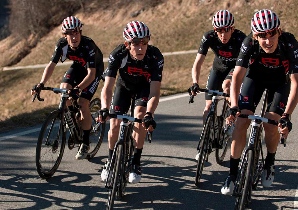 The sleek black jerseys of the team will be adorned with simple red Tudor shields on front and back. The focus will be on the athletes, their pursuit of success, and the road that lies ahead of them. Likewise, the team’s equipment will be based on the expertise of Swiss cycling companies, including the team’s main technical partner, BMC premium bikes.