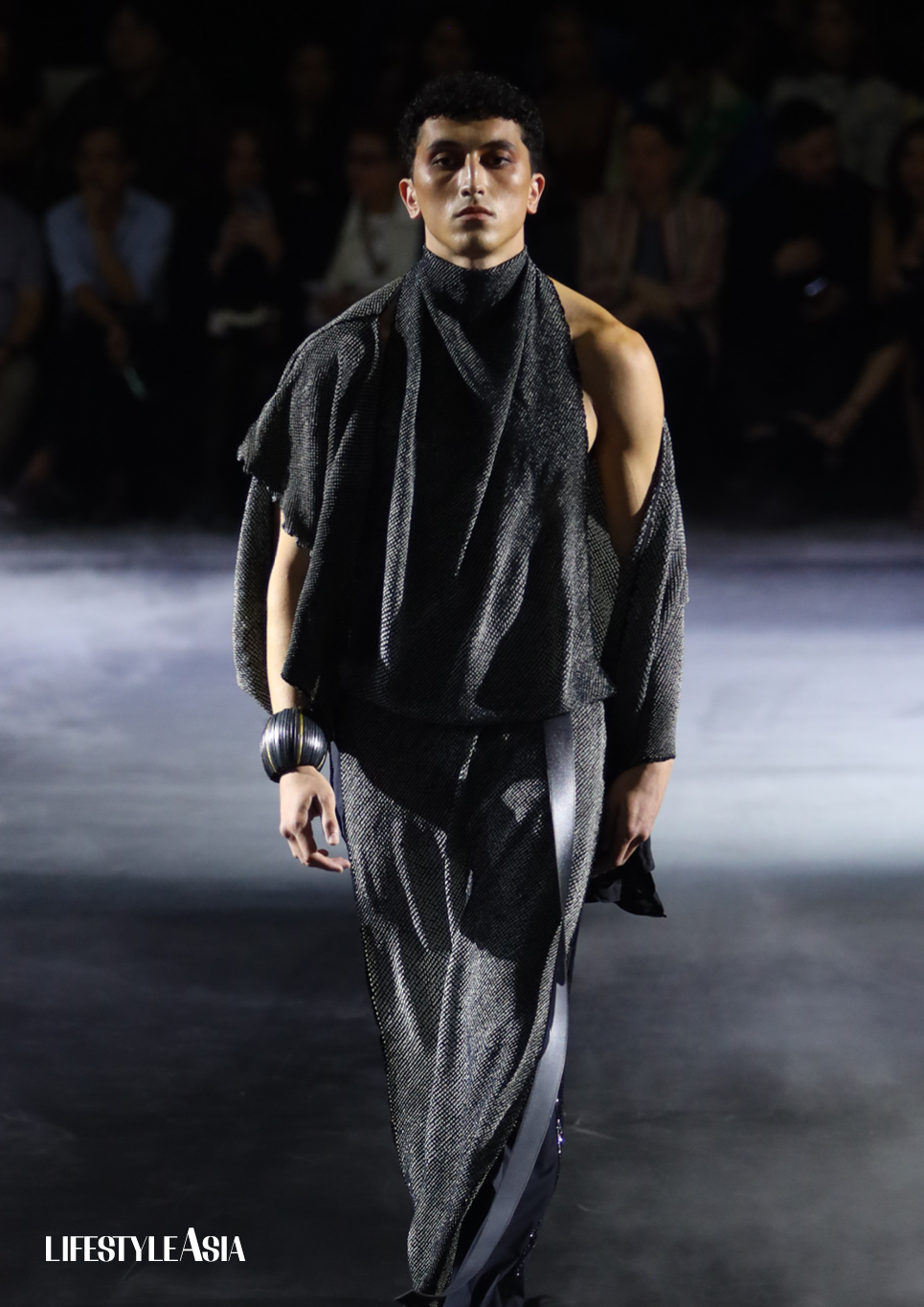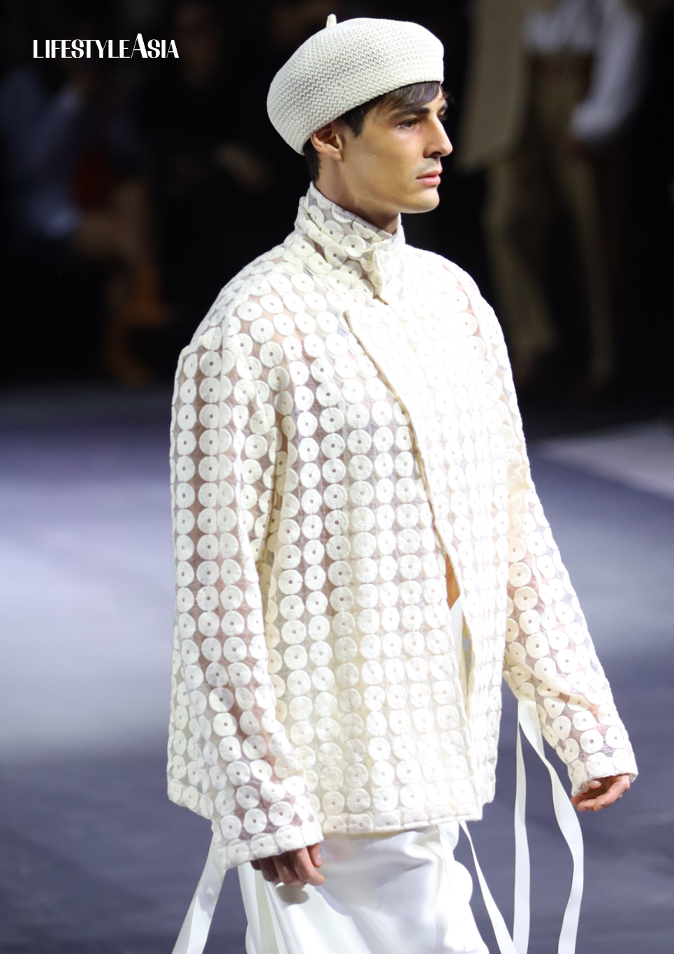 In a prior interview with Lifestyle Asia, Rajo revealed that in this “Pieces of Me” collection, he would dig deep into his memories and feelings to redefine menswear. “There is also a strong sense of gender fluidity in the collection as I try to answer what modern menswear is and how this reflects today,” he said.